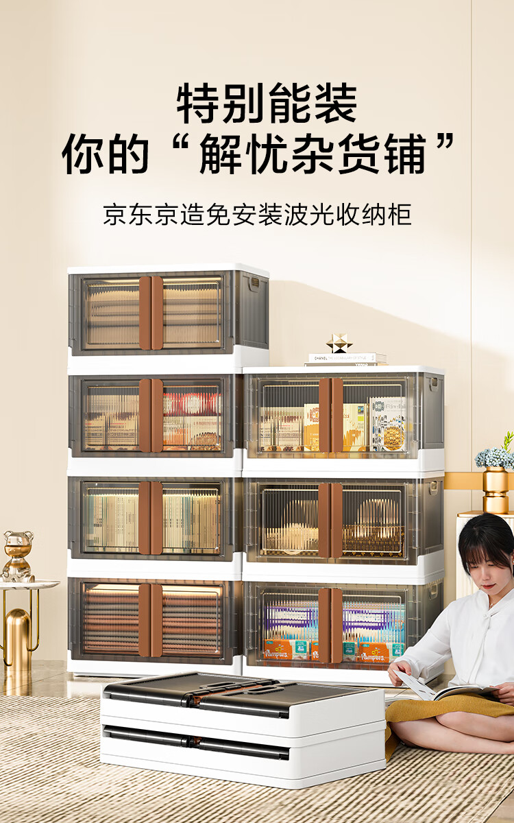 京东京造 收纳柜 收纳箱床头柜子储物柜箱儿童衣柜衣服零食【免安装】