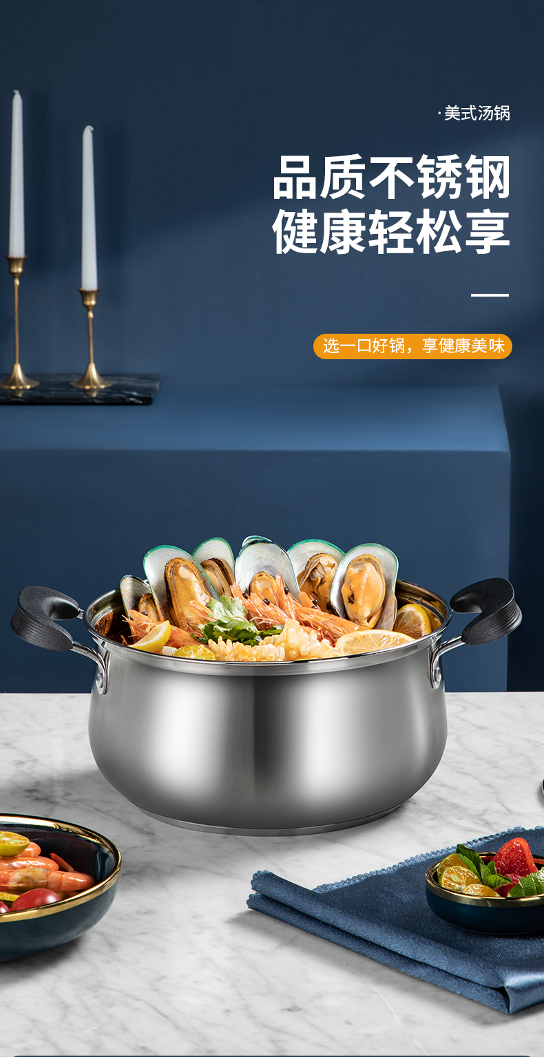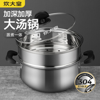 炊大皇 304不锈钢汤锅+蒸屉 汤蒸炖锅蒸锅双耳煮粥煮面 22cm 电磁炉通用