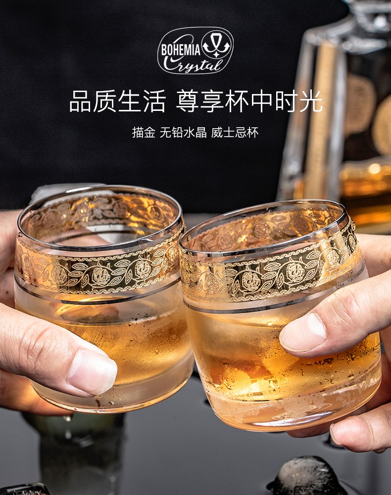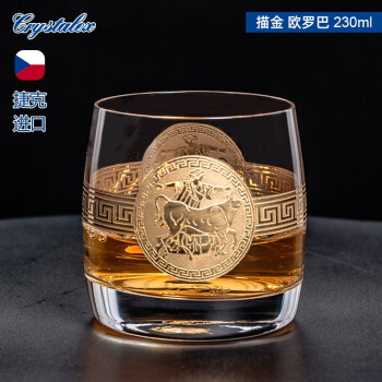 CRYSTALEX捷克进口威士忌酒杯描金啤酒杯水杯家用欧式无铅水晶杯洋酒杯 描金欧罗巴230ml