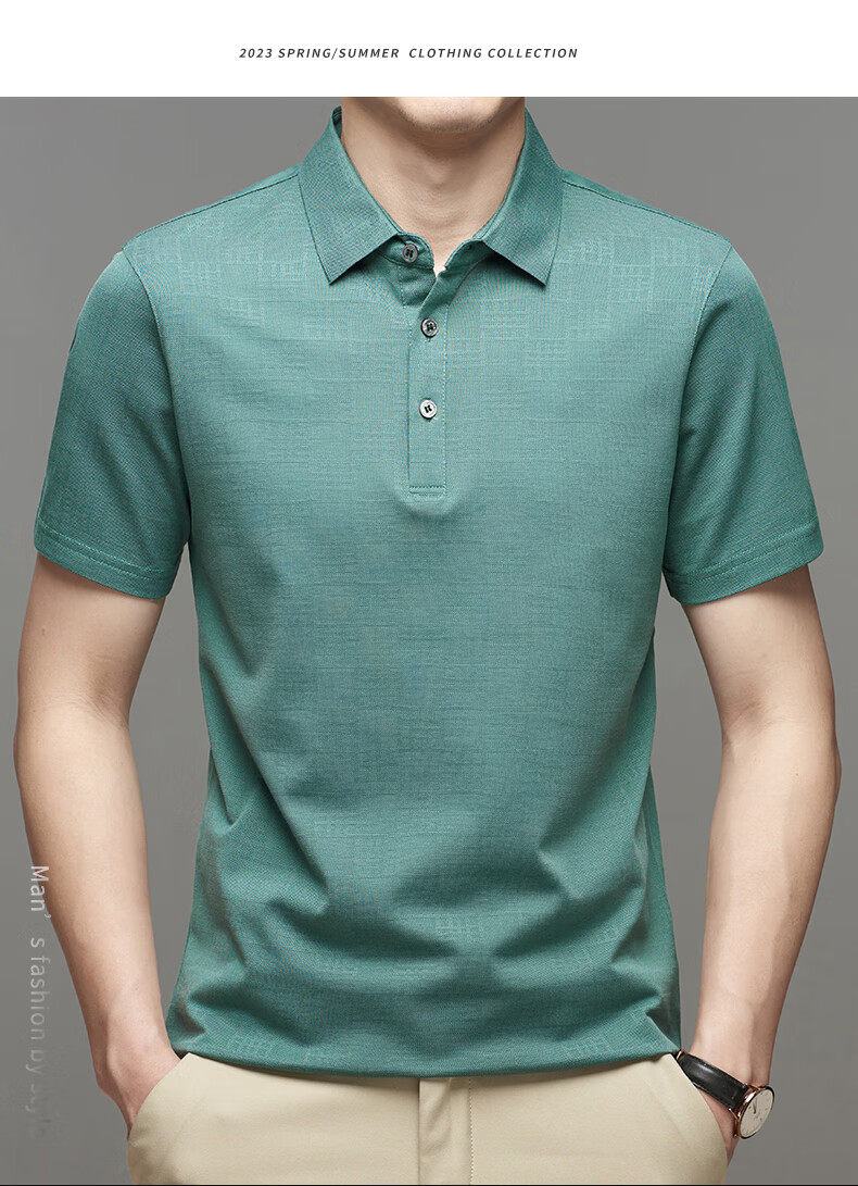 Y&H YIYUAN轻奢POLO衫男2023夏季新款百搭半袖男上衣休闲潮流纯色翻领短袖男 松绿-品牌男装 M