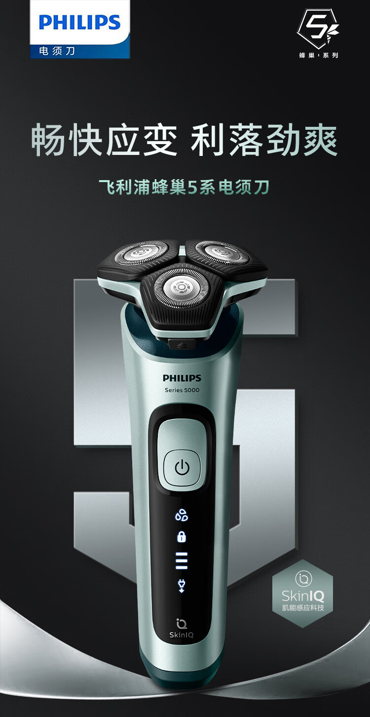 飞利浦(PHILIPS)电动剃须刀蜂巢5系pro SkinIQ高端系列肌能感应刮胡刀 【送男友 送老公】