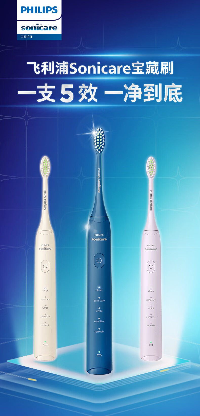 飞利浦(PHILIPS)电动牙刷成人情侣款 礼物 送礼 5种模式 全新软毛柔和亮白刷头 5效宝藏刷 瑞斯白 HX2471/03