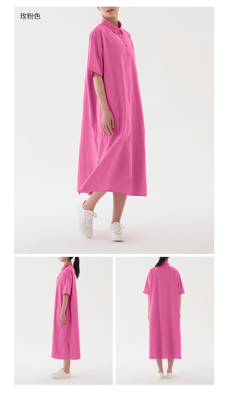 无印良品(MUJI)女式 棉平织 套头短袖连衣裙 GAC67C3S 长裙裙子 浅粉色 均码