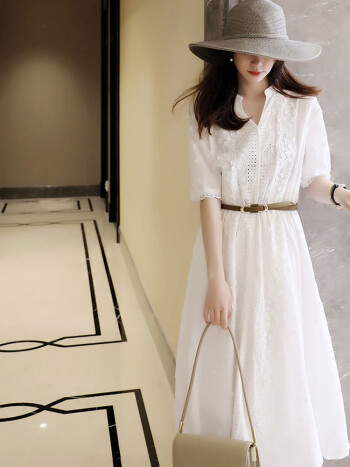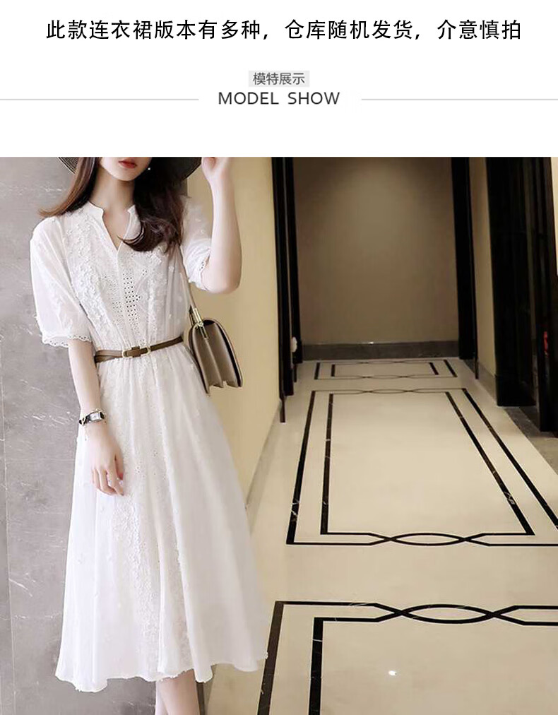 Halo Queen短袖连衣裙女夏仙森系白裙子法式收腰气质长裙 H131Q1126